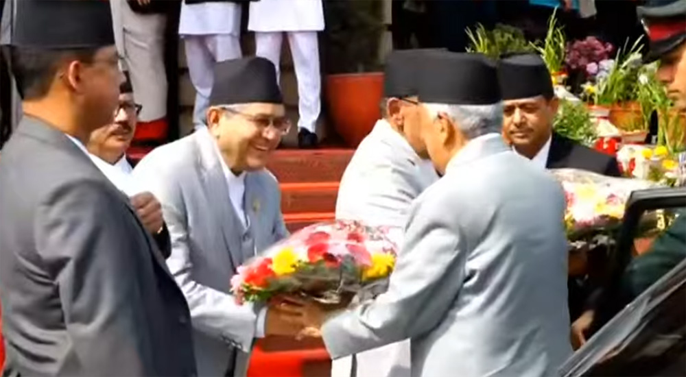 संसद भवनमा सभामुख देवराज घिमिरे र राष्ट्रिय सभा अध्यक्ष नारायण दाहालले उनलाई स्वागत गरेका थिए ।